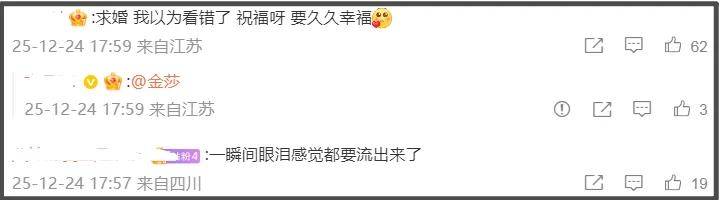 不少网友看到金莎的官宣纷纷留言祝福,祝福他们幸福久久,也为两人一路走来的风风雨雨感到欣慰。
