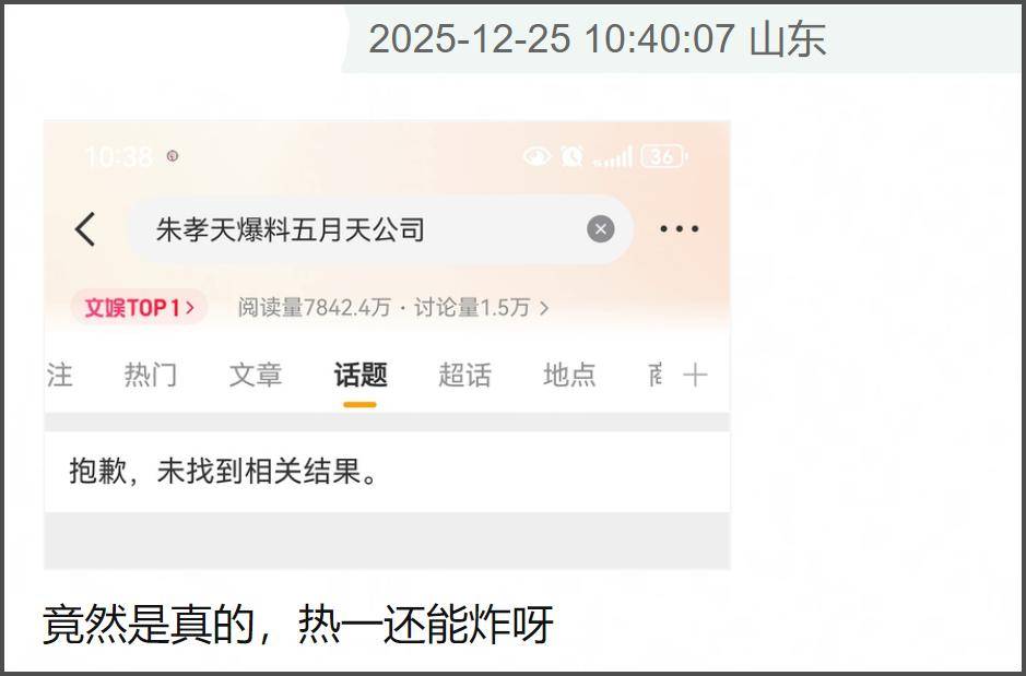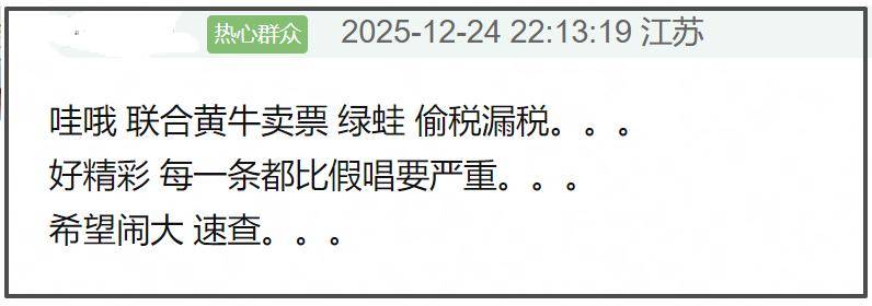 而相信音乐看似没回应,但网络上已经出现不少营销号,开始抨击朱孝天,称其一点儿也不体面,又疯又精明,评论区秒到的一些评论,也是敷衍至极,仿佛水军一样。折腾了一天,朱孝天指控的假唱、洗钱、逃税等严重问题,没啥人提了,相关话题还被炸了。