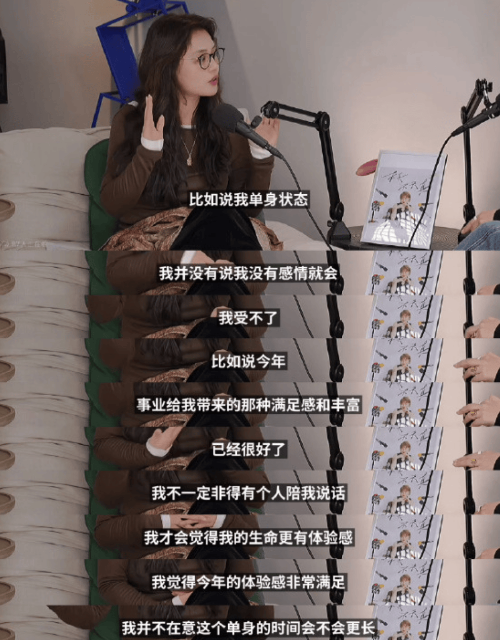 马思纯在播客里称自己是单身状态,不是没有感情就会受不了,还直言今年事业给自己的满足感已经很好了,不一定非得有个人陪伴,不介意单身的时间会不会更长,直接点明自己早已和张哲轩分手。