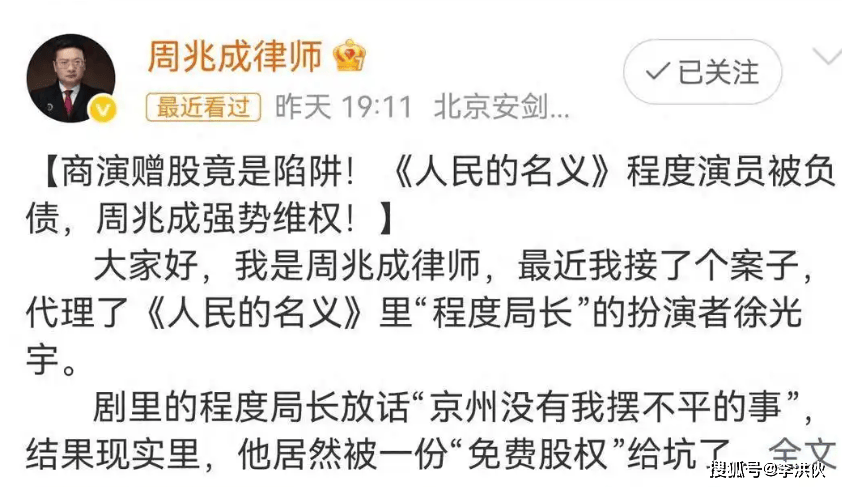 《人民的名义》里的“程度局长”趋炎附势、贪赃枉法,可在戏外,饰演“程度”的演员徐光宇,却因股权纠纷被送上了法庭。